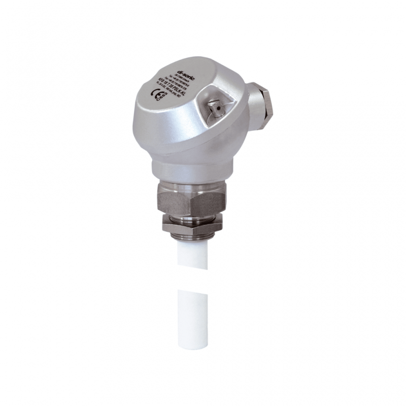 di-soric KFS Serisi kapasitif seviyesi sensörleri, 125 °C'ye kadar yüksek sıcaklık aralığı ve 10 bar'a kadar basınç direnci ile ayırt edilir. Kurulum dikey veya yanal olarak gerçekleştirilir ve sensör, bir adaptör kullanılarak çeşitli diş çaplarına monte edilebilir.